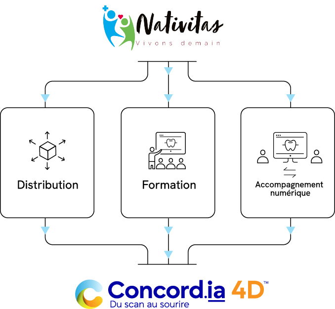Nativitas met au service du réseau CONCORD.IA 4D™ son savoir-faire en distribution, formation et accompagnement numérique. Une alliance entre expertise terrain et innovation technologique.